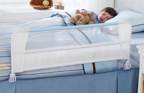 Keep toddlers safe in bed with Munchkin's Safety Toddler Bed Rail. Fits mattress sizes twin to queen and conveniently folds down for easy bed making and access. Assembly is a easy and does not require tools.